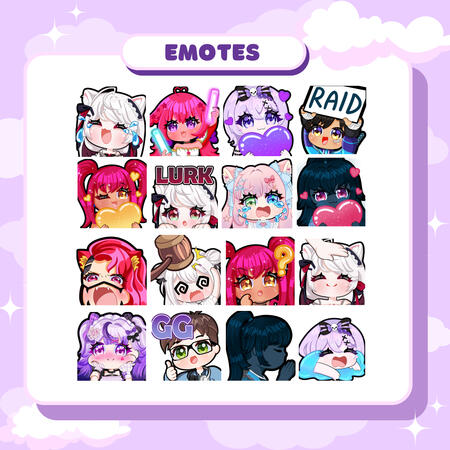 ♥ +15$ for an additional character within the same emote♥ Includes 4 PNG files (28px, 56px, 112px, 160px)♥ Delivery time can vary from 2-21 days depending on the number of emotes.♥ See T.O.C for more info about revisions!